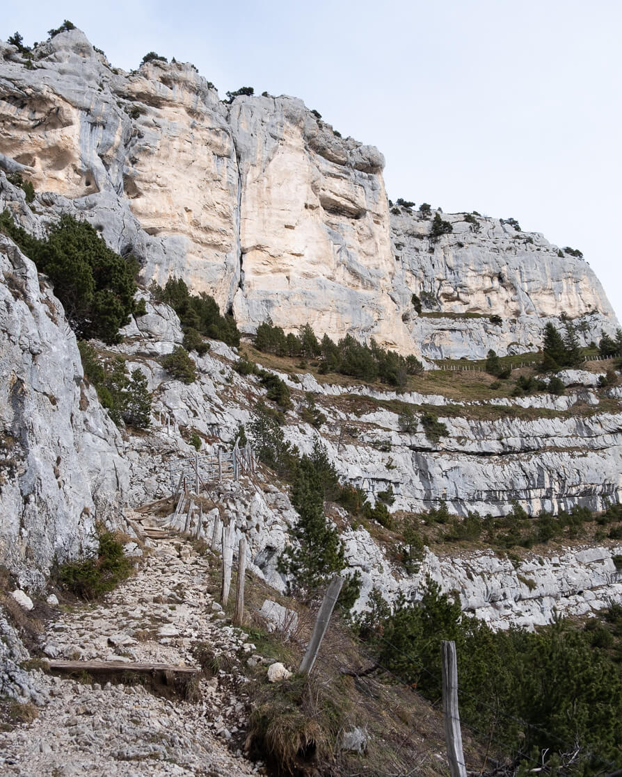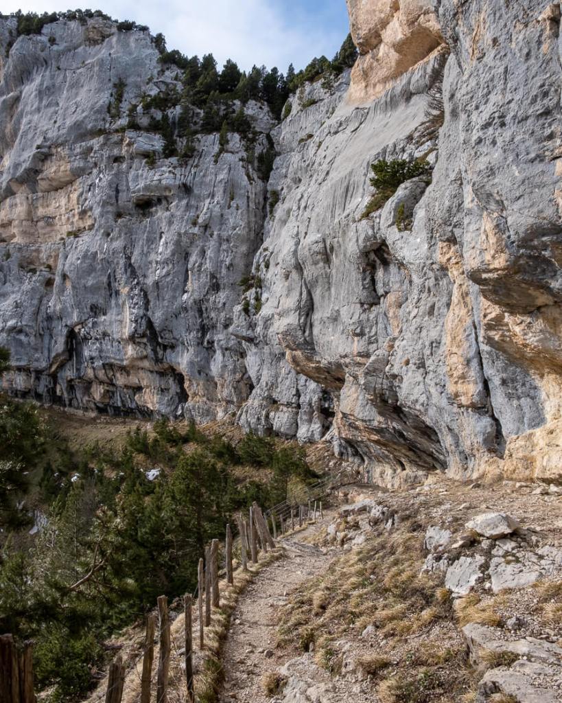 Cette randonnée est vertigineuse mais il n’y a pas de passage exposé puisque des barrières sont en place entre vous et le vide. C’est une des randonnées incontournables autour de Grenoble. Vous monterez en lacets à flanc de falaise, avec une belle vue sur Belledonne et les falaises calcaires qui vous entourent.