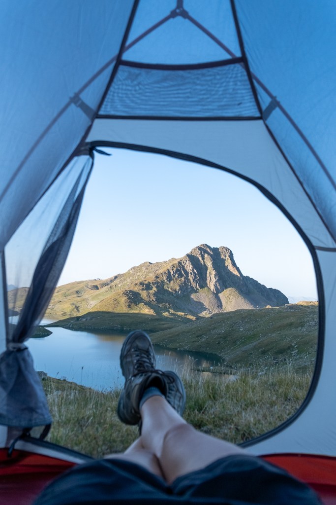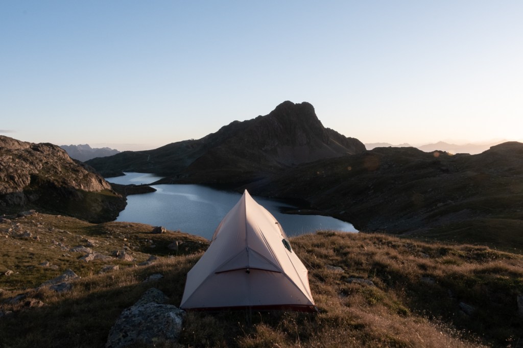Au départ du Col de la croix de fer (parking avec nombreuses places) vous suivrez les pistes de ski (parcours pas très intéressant) jusqu’à arriver au refuge de l’étendard situé au bord du lac Bramant (2435m). Longez le lac par la gauche et vous arriverez à un second lac, c’est vers ce lac que nous avons posé la tente mais il y a de nombreuses possibilités.