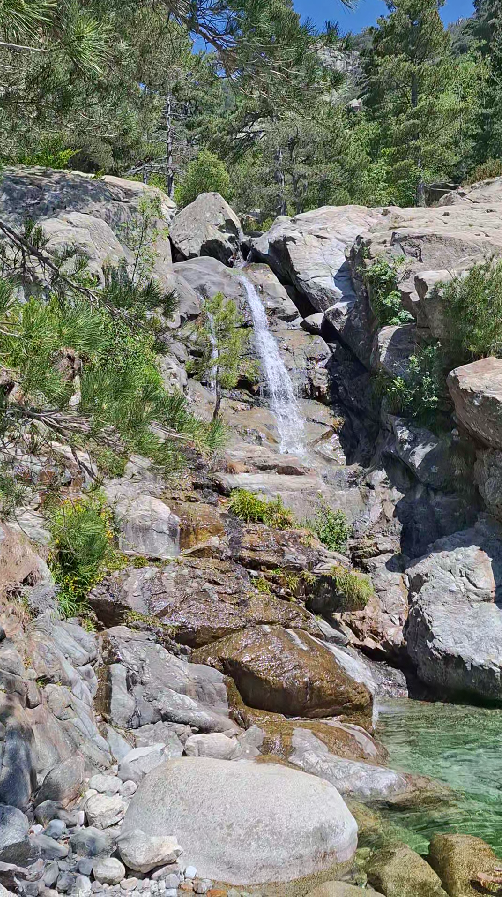 La Cascade des Anglais n’est pas une seule chute, mais une succession de petites cascades et de piscines naturelles où l’on peut se baigner. Le sentier est majoritairement ombragé, suivant le cours de la rivière, offrant plusieurs spots pour se rafraîchir au cœur de la forêt corse. Cette randonnée facile en Corse est mentionnée dans tous les guides et tous les blogs que j’ai visités.