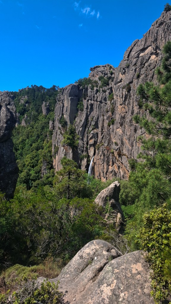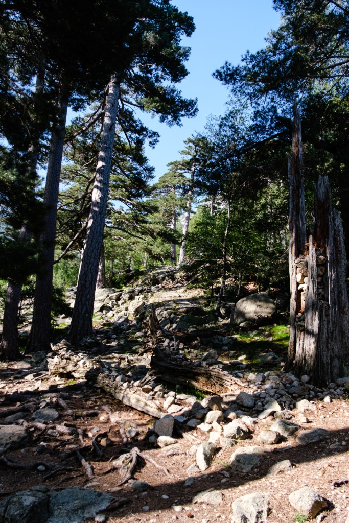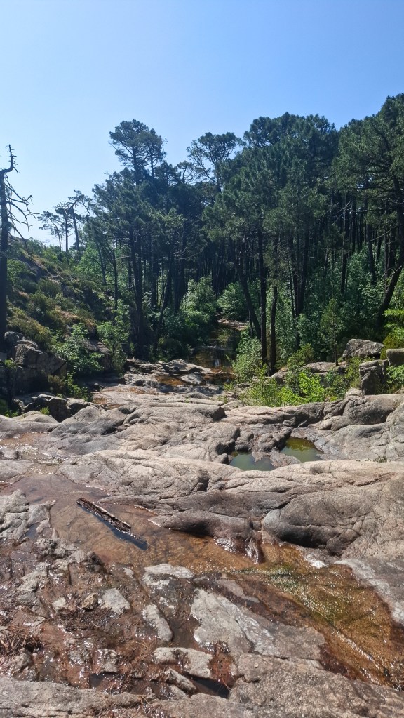 J’ai choisi de faire une boucle en partant de la maison forestière de Poppaghja. J’ai adoré le début de la randonnée dans la forêt avec ses rivières, c’était très beau. Le sentier se corse (jeu de mot !) ensuite et l’ombre devient inexistante. J’ai trouvé la montée très difficile à cause de la chaleur (pourtant j’ai démarré la randonnée vers 8h du matin – déjà bien trop tard).